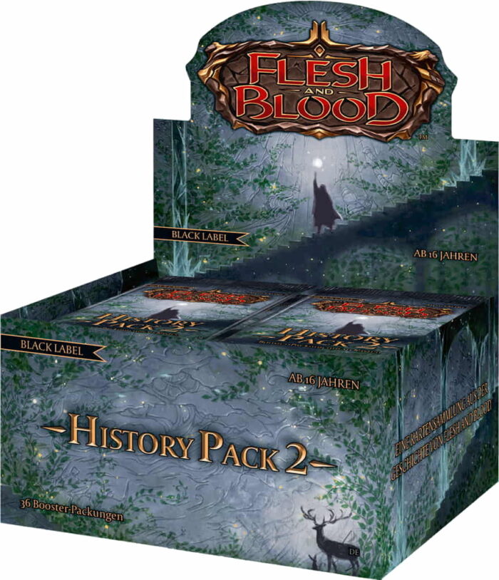 History Pack 2 contains many of the most important cards from the second year of Flesh and Blood, combined into a single black-bordered set. To celebrate the release of History Pack 2 in multiple languages, a limited edition Black Label version of History Pack 2 has been created containing the 3 Fabled cards from this era!