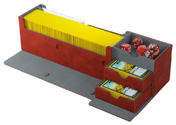 • 2 removable drawers for tokens, dice, sleeved cards or full decks