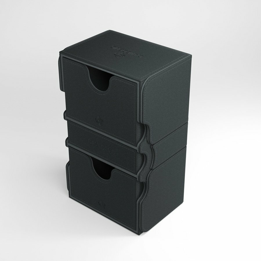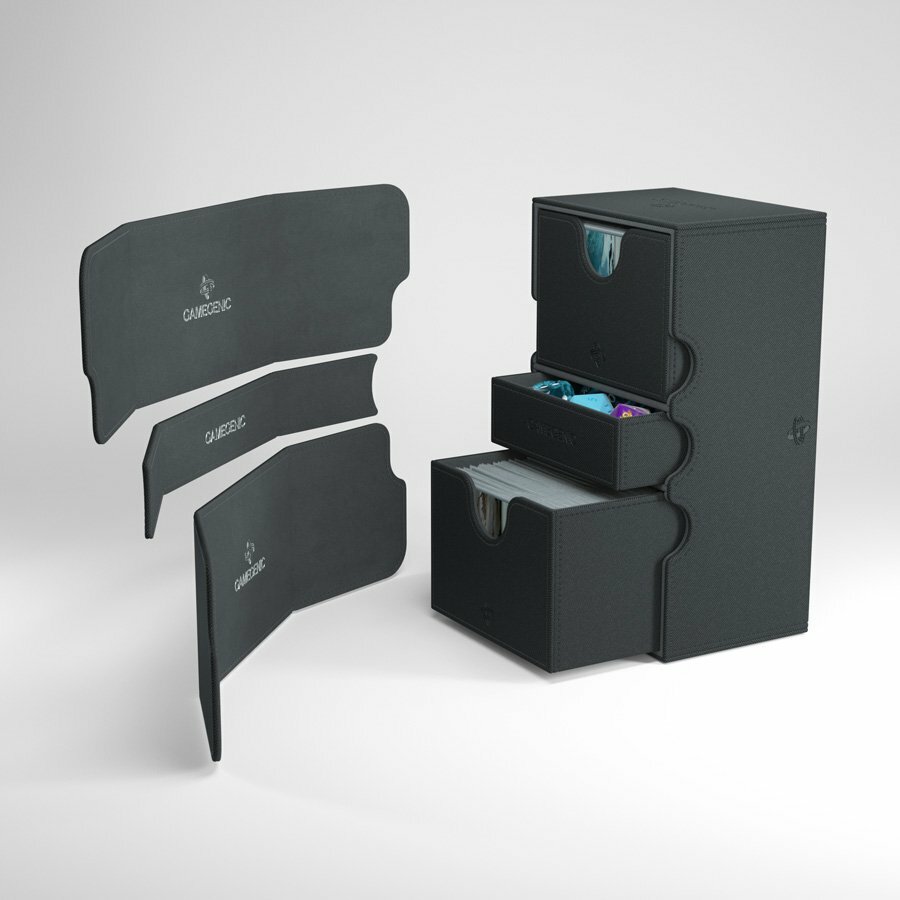 Two removable card holders keep up to 200 double-sleeved cards in this large and extremely robust deck box. The Stronghold is covered with elegant Nexofyber material, with soft microfiber inside, and also contains an accessories drawer. Just like other Convertible products, its flaps are removable and can be clipped to the back side of the box. Powerful magnets ensure a safe closure. Completely removable, interchangeable flaps and inner card holders offer Mix & Match customization options.(dices,sleeves and cards are not included)