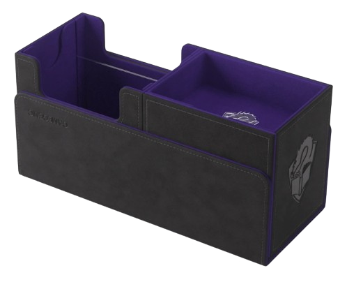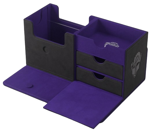 • Top compartment for additional accessories, cards, tokens, dice, life point counter, Toploader or slide Card Cases