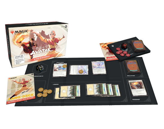 Team Avatar is back! The action, adventure and spirit of Avatar der Herr der Elemente come to life in Magic: The Gathering. Master the new Earthbending, Airbending, Waterbending and Firebending mechanics to tell your version of the story and discover your Magic playstyle. Tame the elements. Master the game. Your Magic: The Gathering journey begins with a friend by your side! Play your very first game in a guided duel between Aang and Zuko. Choose your side and send your forces into battle as you learn the basic principles of the game. Once you’ve mastered the basics, you can use the Avatar der Herr der Elemente theme decks to master the rest of the elements – just combine two of them and you’re ready to go!