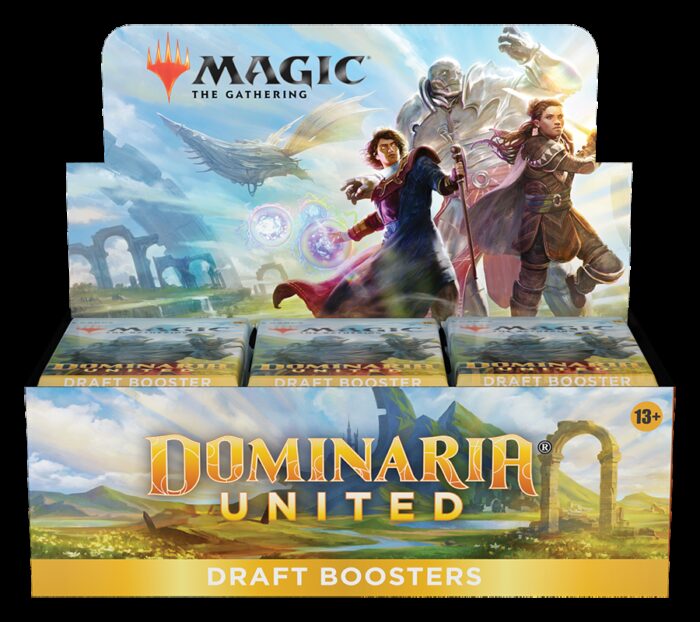 A Dominarias Bund Draft Booster Display contains 36 Dominarias Bund Draft Boosters and 1 traditional Box Topper Foil card.