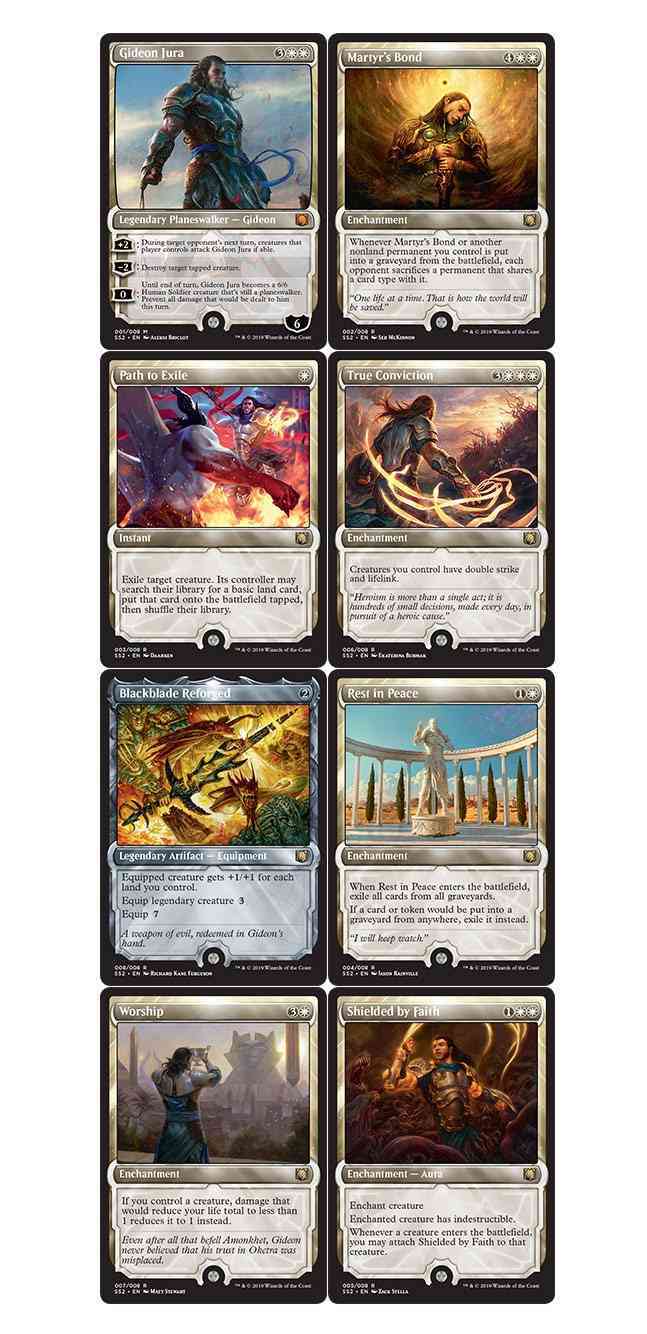 Signature Spellbook: Gideon contains eight cards and an additional premium card. All of them feature the mighty Planeswalker Gideon Jura. With premium cards available for the first time, fantastic new illustrations and alternative frames, it’s a collector’s dream.