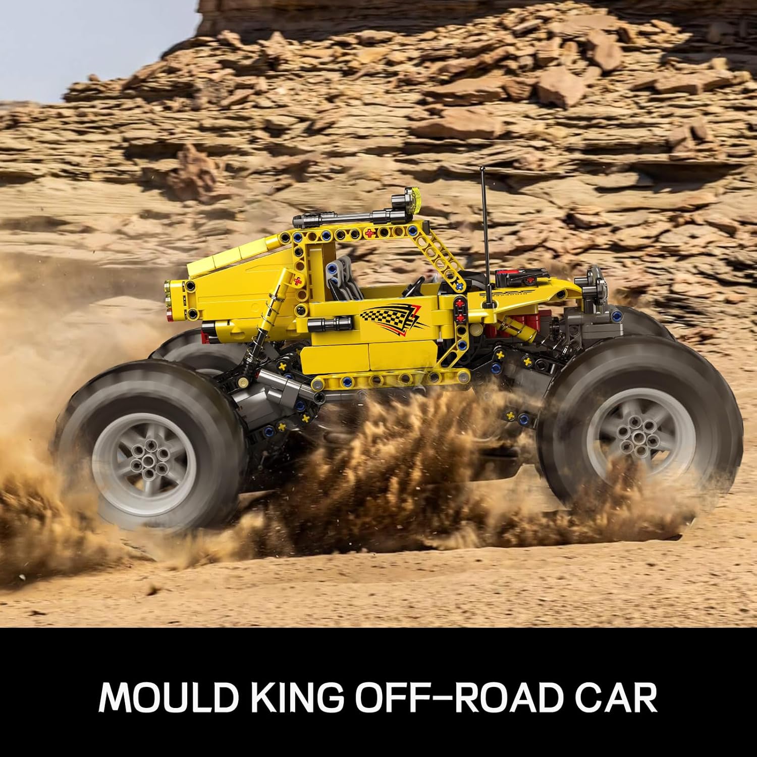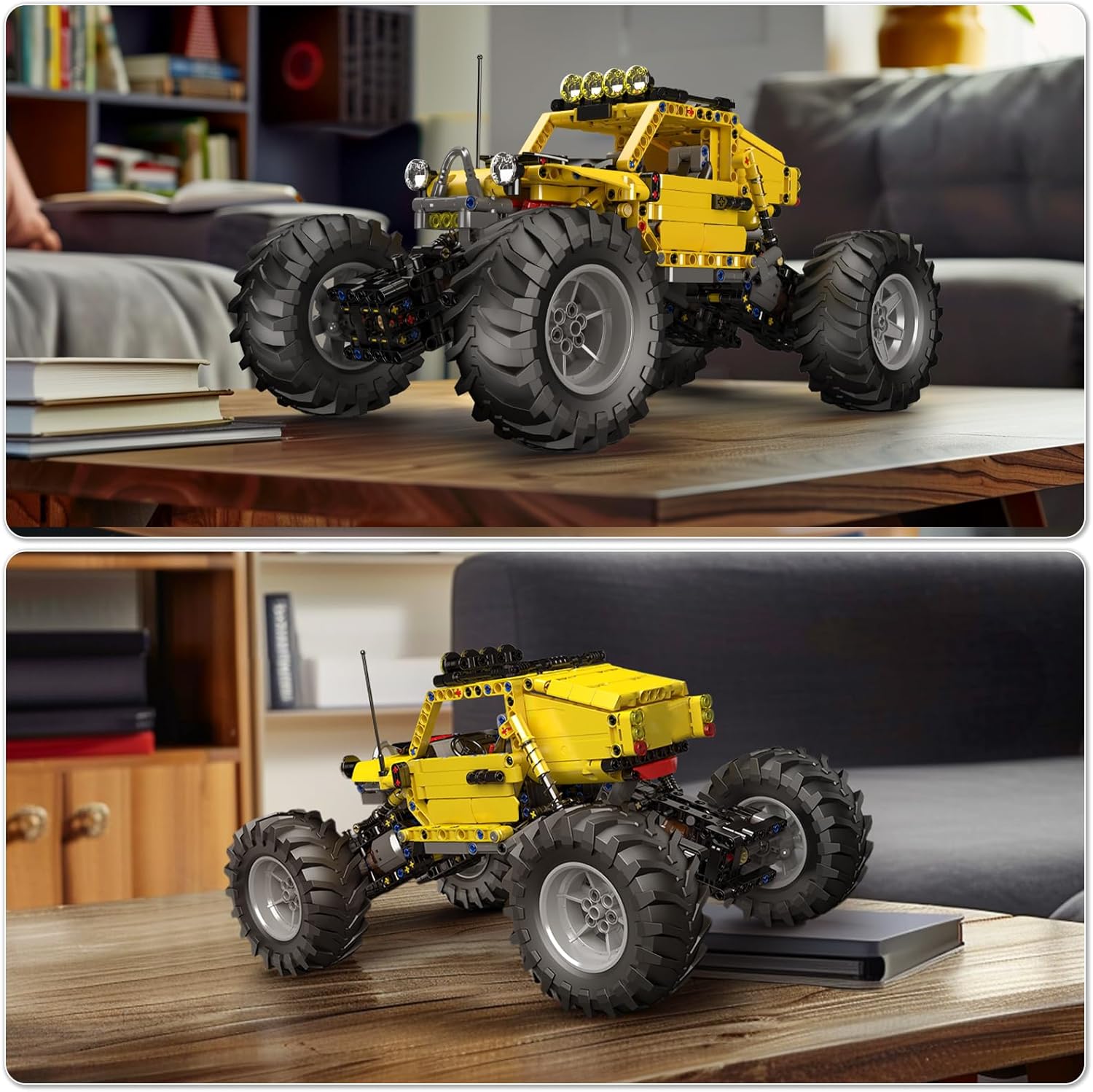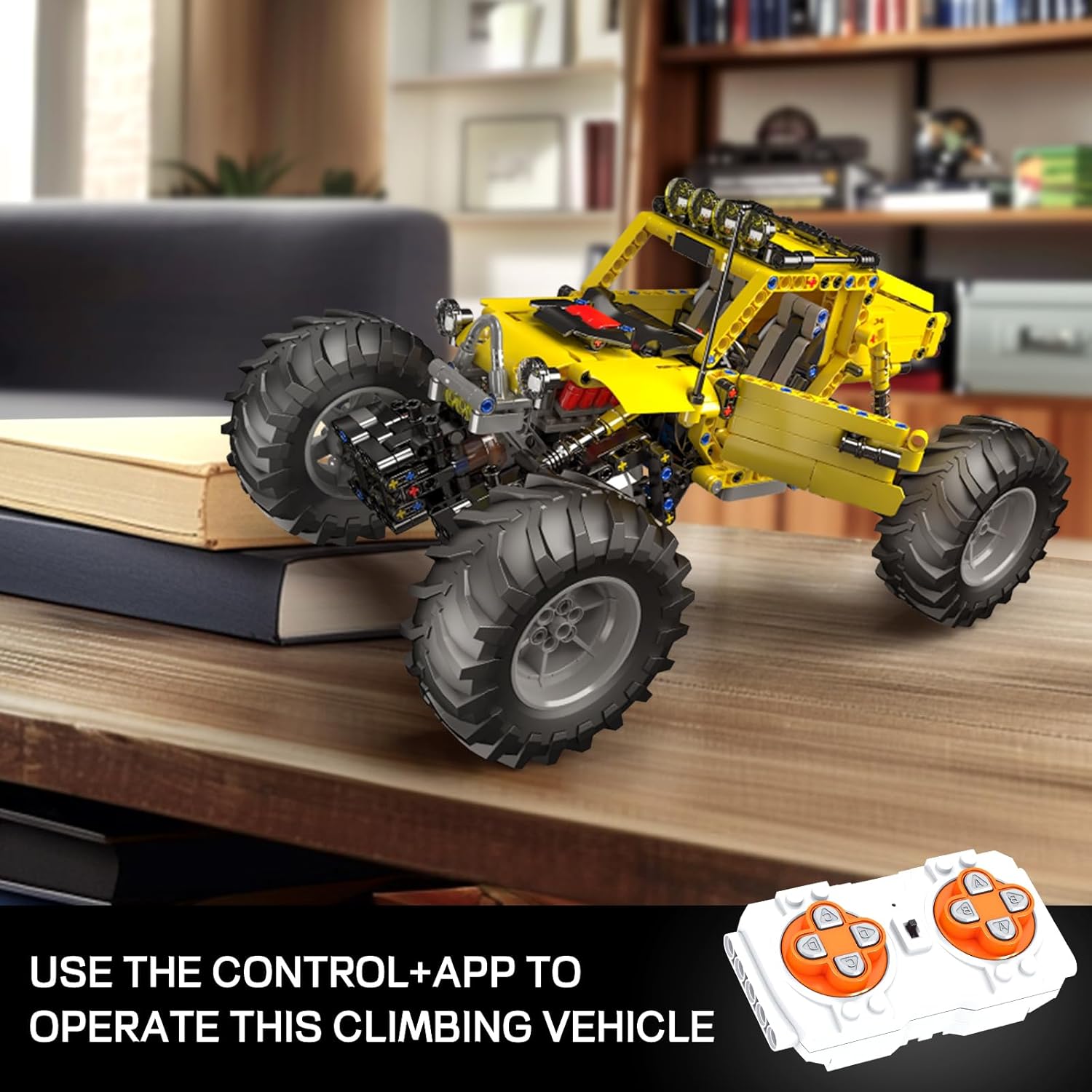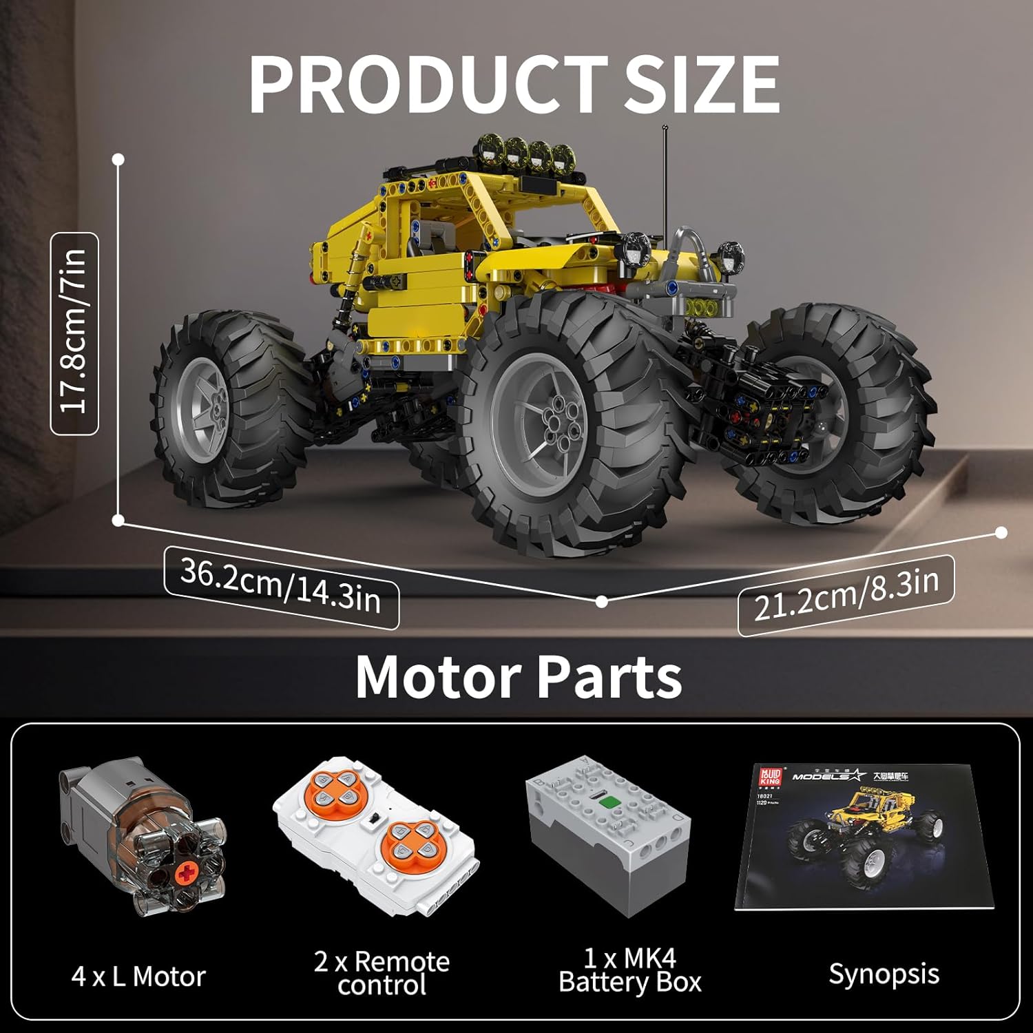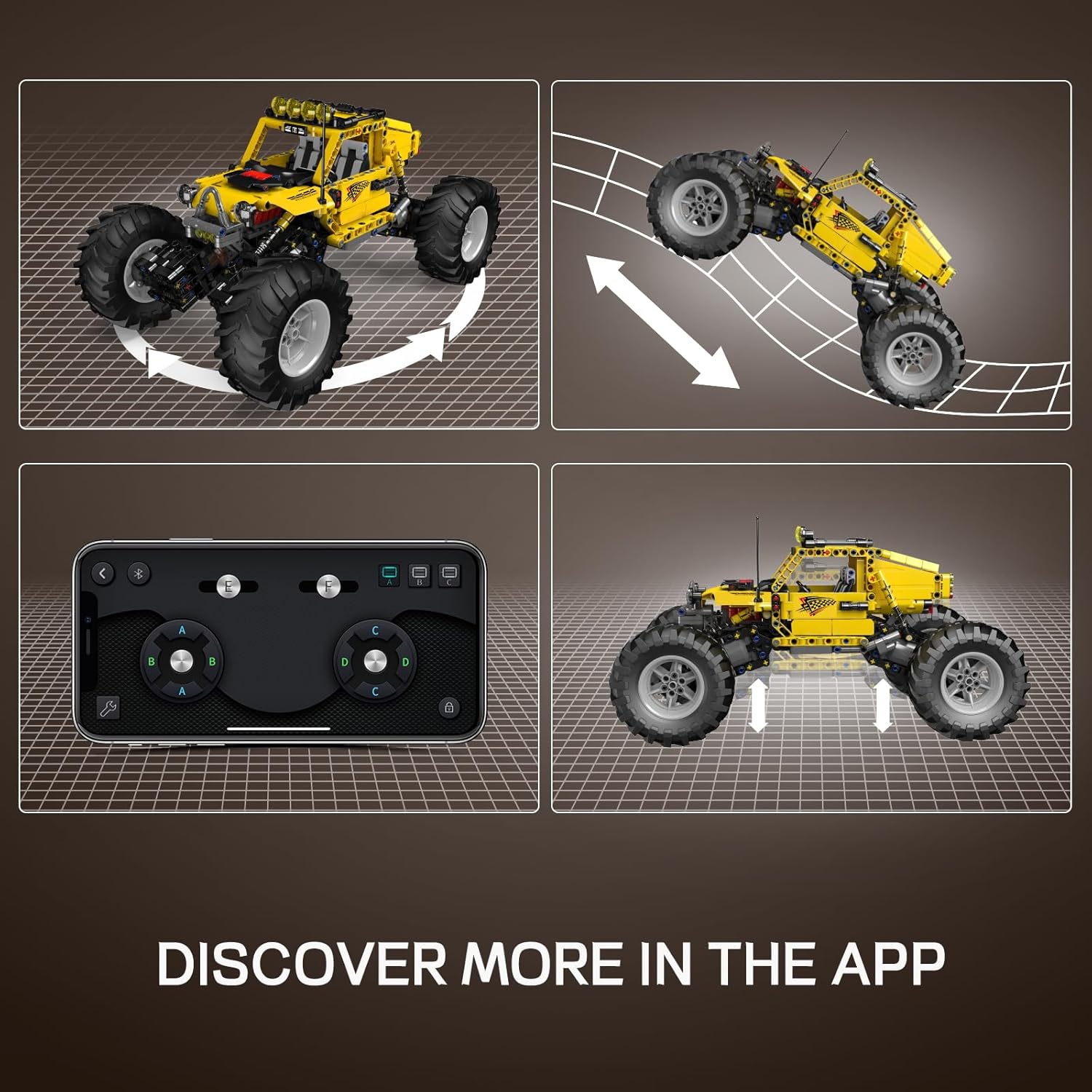The special feature of this off-road climbing vehicle, apart from its robust design and independent wheel suspension, is the control system. In contrast to the usual servomotors, this model uses L-motors as wheel hub motors. Thanks to this drive concept, the vehicle has permanent all-wheel drive. In combination with the Mould King app, these motors can be synchronized to simultaneously exert maximum force and deliver the strongest torque.