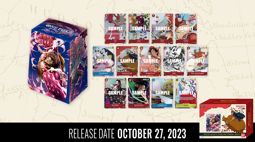 The One Piece TCG 2023 Gift Set is a perfect gift! It contains many Booster Packs, a deck box and 3 Promo cards selected from 13 types featuring new, special artwork.