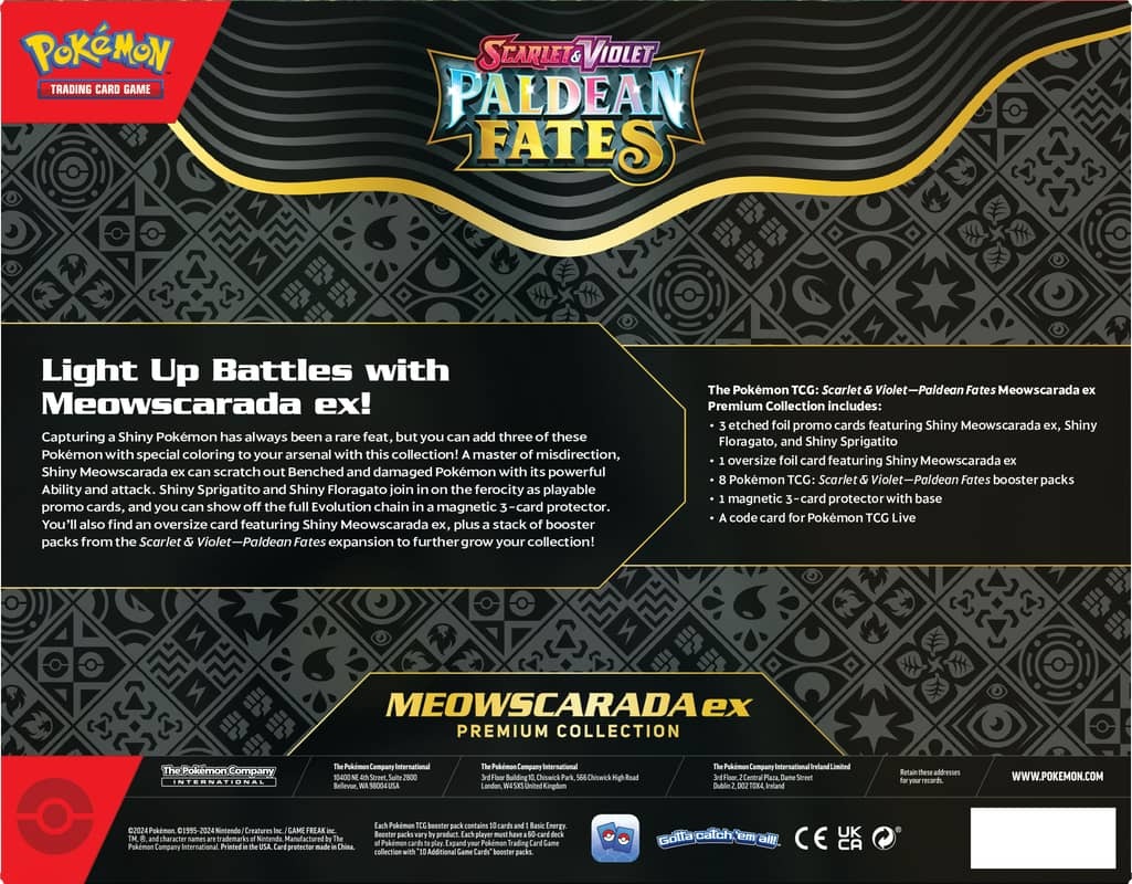 Each Pokémon TCG: Scarlet & Purple Paldean Fates Pokémon ex Premium Collection contains: