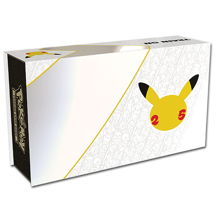 Celebrate Pokémon with Glurak and Pikachu – two of the most popular icons in the Pokémon world! This ultimate collection contains a huge set of Pokémon Trading Card Game: Celebrations booster packs, as well as commemorative Pikachu and Glurak cards made of pure metal, showing these characters as they first appeared in the game! Plus more booster packs and a guide to the game mechanics from the history of the Pokémon trading card game. Also included: playable promo cards featuring Pokéball and Pikachu-V in shimmering etched gold – and additional surprises in more booster packs!