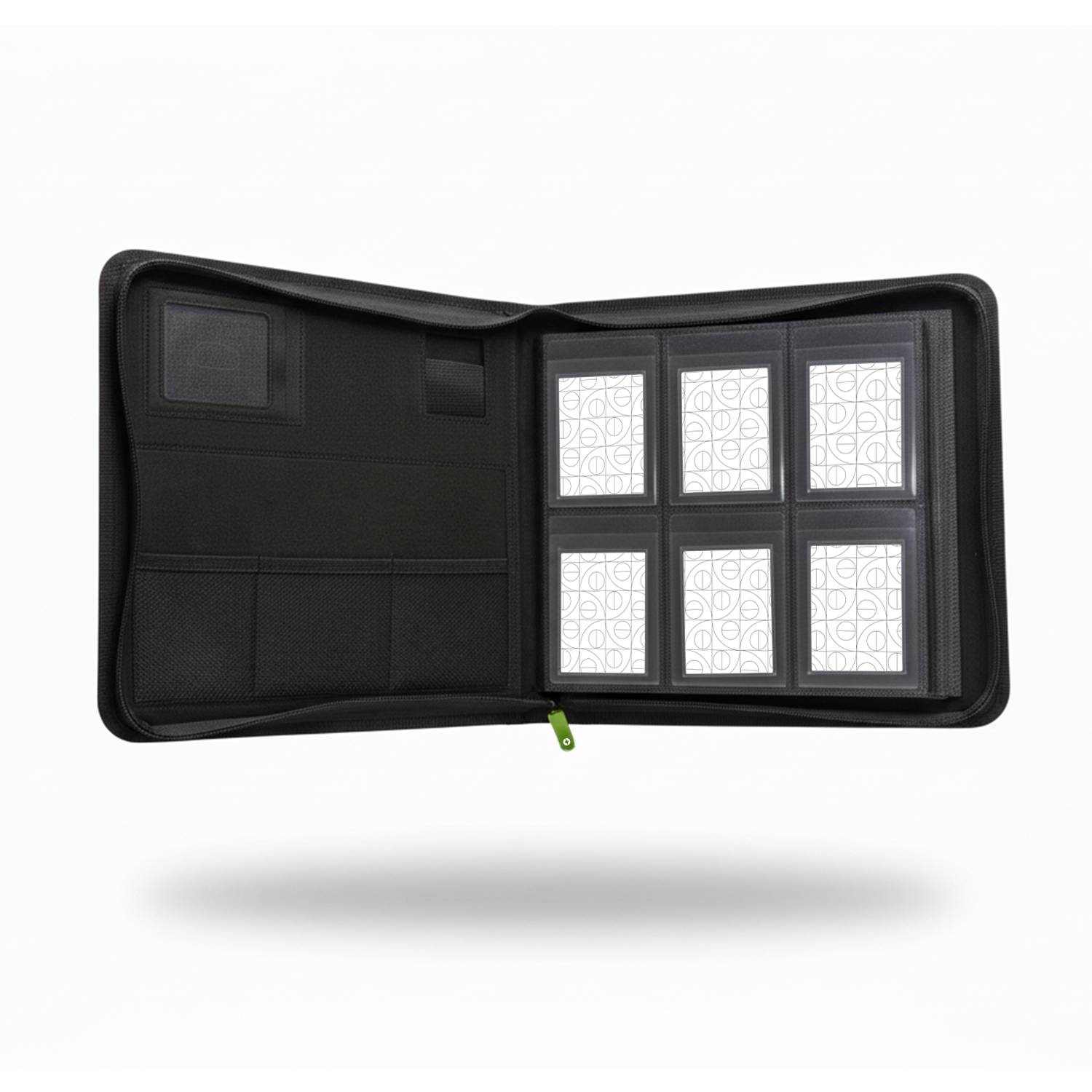 The Guardium Semi Rigid Card Holder Binder combines protection, organization and elegant design in one premium product. Its padded cover and water-repellent material protect your collection at all times. A secure zipper closure ensures that everything stays firmly closed, while 14 double-sided pages with 6 pockets offer space for up to 168 cards. Side pockets provide additional security and stability. The folder is acid-free and PVC-free, so your cards will stay in pristine condition for years to come. It also has dedicated space for an AirTag, a silica gel packet, two Slabs and an Aurell Mini Snap, making it the ultimate solution for serious collectors.