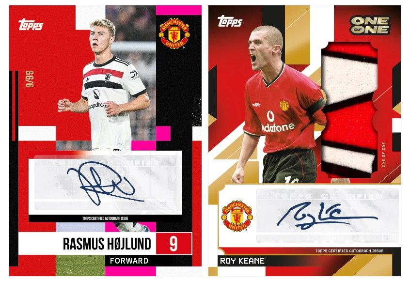 As well as Consequential Autographs, the 2024/25 Team Set also includes Consequential Relics – bringing you closer to United stars, past and present, than ever before. In lucky boxes you will find the spectacular, gold-framed Devils in Glory Autograph Relics – unique pieces that combine autographs and relics of today’s heroes and club legends.