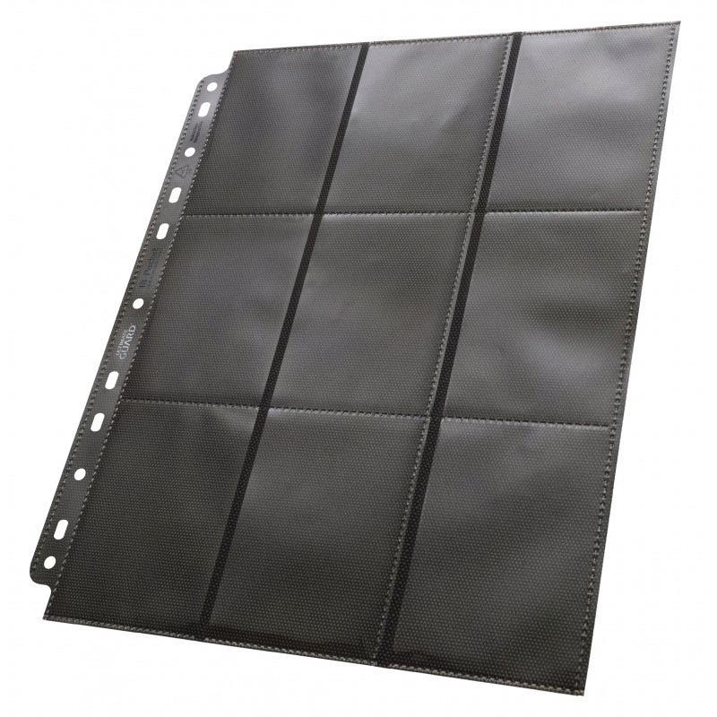 High-quality, double-sided binder pages (9 pockets on each side), suitable for almost any ring binder, for transporting and storing up to 18 trading cards in two sleeves (double-sleeved) per side. Each Packs contains 50 pages.