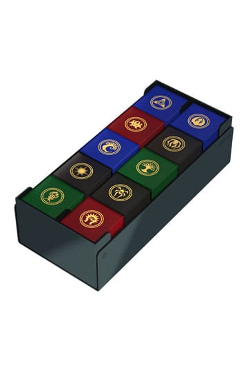 Gather the Gilden von Ravnica! The stunning Arkhive 1000+ Xenoskin from the “Guild Summit” series is the perfect storage place for larger collections, a cube or several deck boxes – for example our ten Boulder 100+ in guild design. The lid, which is completely removable for the first time on the Arkhive, is attached on both sides with a strong magnetic closure and ZnapClaw mechanism and bears the symbol of the Guild Alliance. The Arkhive 1000+ Xenoskin is made from our proven and durable Xenoskin material.
