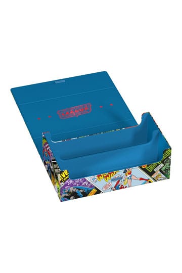 The perfect storage box for TCG decks and trading cards meets legendary comics from the DC universe! The Collectors Case is the perfect home for up to eight Squaroes from our DC Justice League™ series. But of course it doesn’t necessarily have to be Batman, Wonder Woman & Co: The Collectors Case in a unique vintage comic design is also suitable for storing other deck boxes, individual trading cards (up to 1000 pieces in double protective sleeves) or gaming accessories of all kinds. The full-color printed, durable Xenoskin material and the strong magnetic closure with ZnapClaw mechanism also ensure that all contents are kept safe.