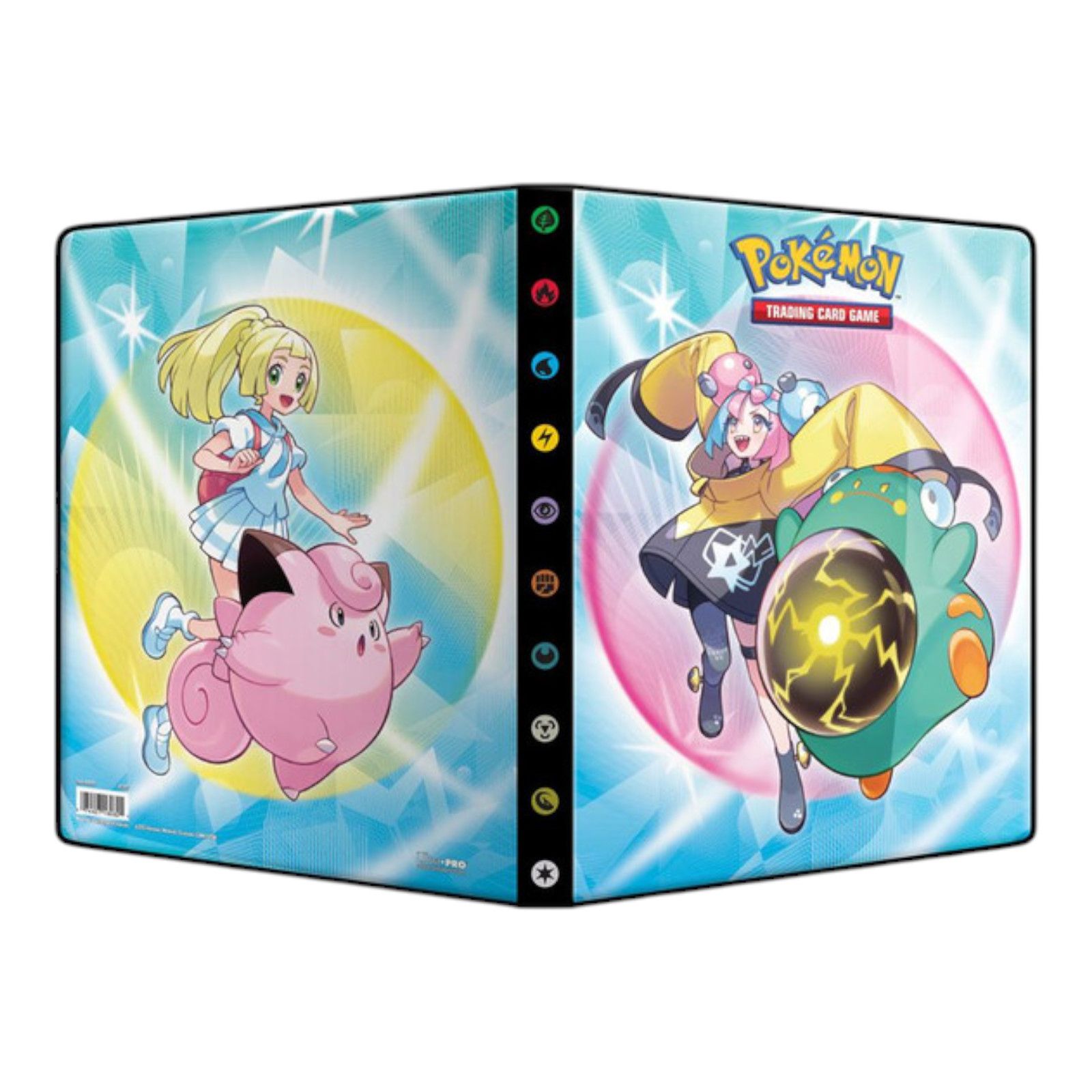 The 9-pocket Pokémon portfolios feature a colorful cover with a full-screen motif. Each portfolio offers space for up to 90 cards in standard size (single inserted) or 180 cards (double inserted) and protects them in archival-safe polypropylene pages. Manufactured in California, USA.