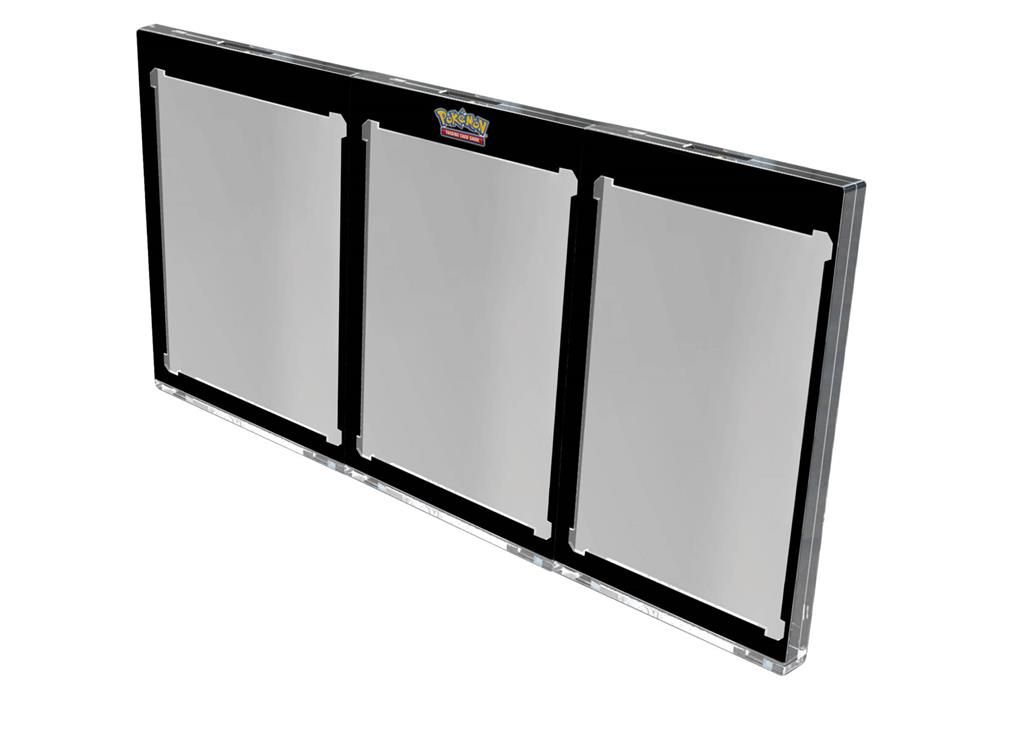The card holder has space for three standard-sized Pokémon cards.