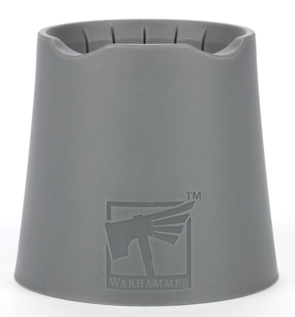 The Warhammer water container is far more than just a simple water cup – it was developed by painters for painters. Made from robust gray plastic, the base and inside walls have ribbed areas with a structure specially selected to clean brushes particularly effectively.