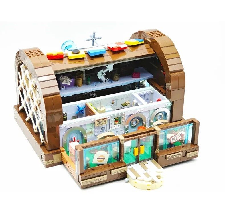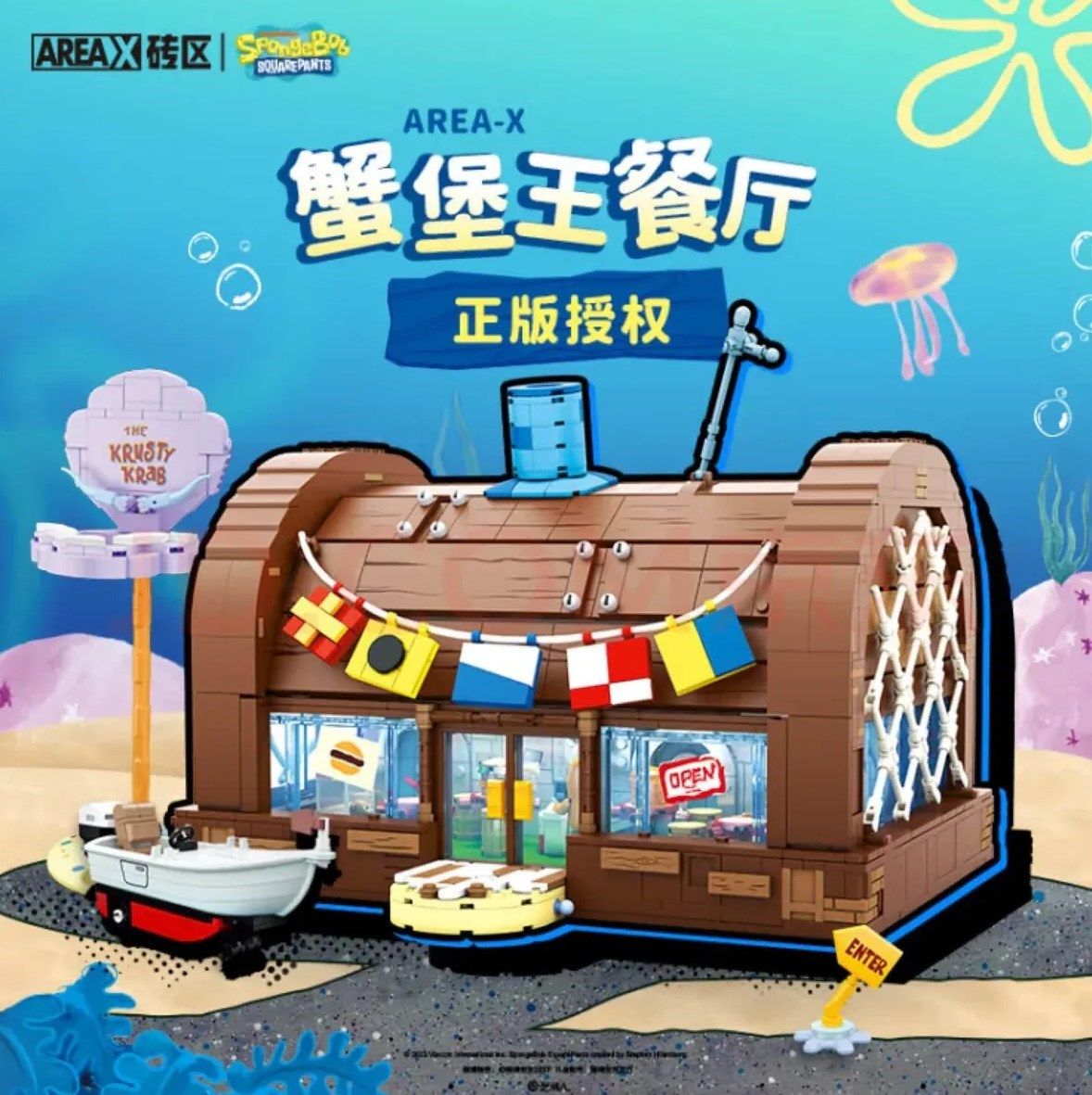 Rendez visite à Bob l’Éponge alors qu’il travaille au fast-food Krusty Krab. Comme son nom l’indique, on y sert des hamburgers au crabe, qui sont très appréciés. Tout le monde y participe – outre Bob l’éponge et son patron M. Krabs, il y a aussi Thaddeus et Patrick Star. Sheldon J. Plankton, ainsi que deux autres clients qui apparaîtront certainement à plusieurs reprises dans la série.