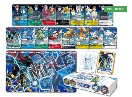 Pour célébrer la sortie du film “Digimon Adventure 02 : The Beginning”, voici un set spécial de cartes Digimon avec de nouvelles illustrations, un tapis de jeu, des pochettes et une boîte de rangement !