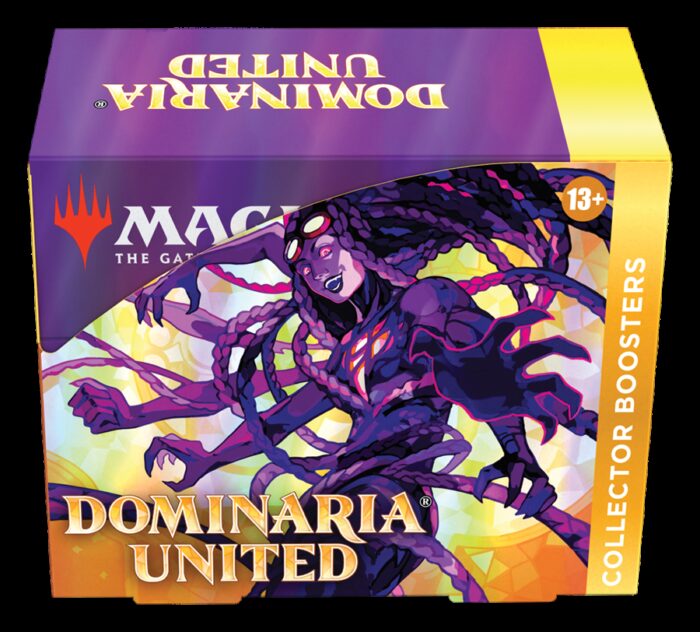 Un présentoir de Boosters collector Dominarias Bund contient 12 Boosters collector Dominarias Bund et 1 carte de fond de tiroir Box Topper traditionnelle.
