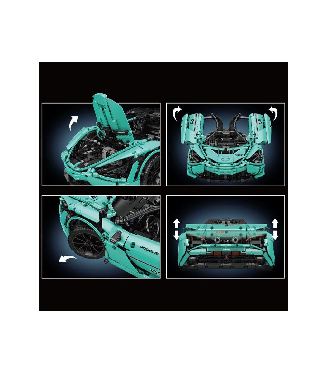 La supercar McLaren 720 dans sa nouvelle teinte. Les lignes lisses de la carrosserie du modèle et l’accord de couleurs fluorescentes éblouissantes reproduisent parfaitement l’apparence et les caractéristiques de la carrosserie d’une véritable voiture de sport de luxe. Elle comprend 3188 pièces et se distingue par son haut niveau de détail, ainsi que par de nombreuses caractéristiques techniques.