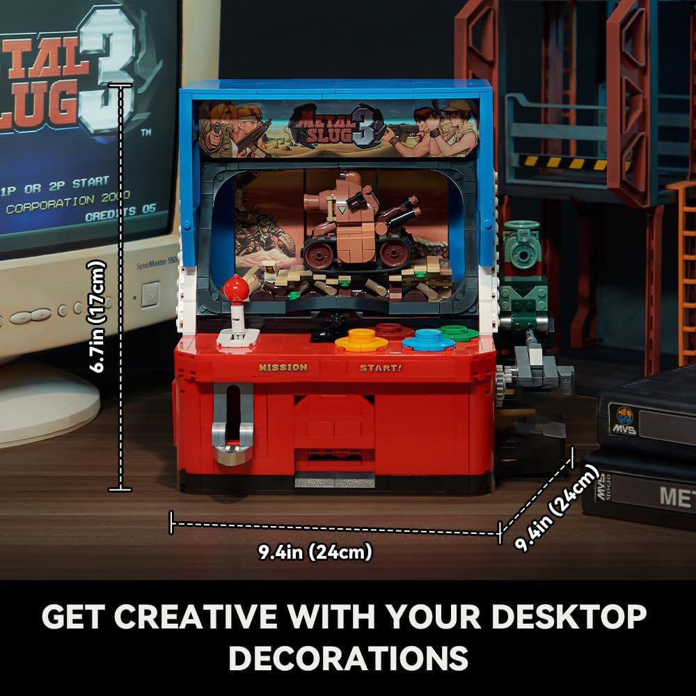 Retournez dans les années 1980 avec ce kit de construction d’arcade pour adultes. Profitez d’un projet de construction gratifiant qui vous permettra de recréer le légendaire jeu d’arcade Metal Slug, considéré par beaucoup comme le jeu vidéo le plus influent de tous les temps.