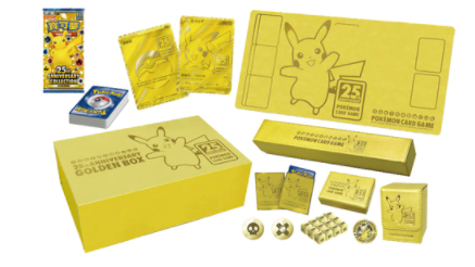 La Collection 25th Anniversary Pokémon Golden Box est remplie de cartes et d’objets de collection essentiels pour tout dresseur, fan ou collectionneur de Pokémon. Dans la Collection 25th Anniversary Pokémon Golden Box, vous trouverez :