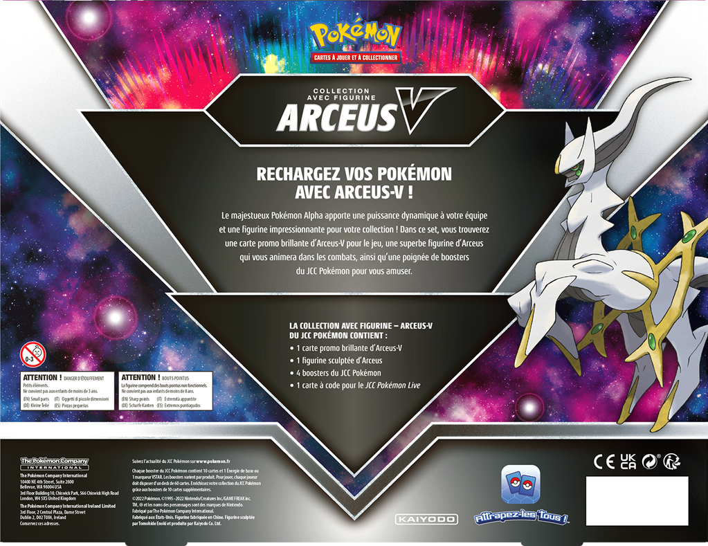 votre collection ! Dans ce set, vous recevrez une carte promotionnelle en foil jouable avec Arceus V et une figurine Arceus magnifiquement détaillée