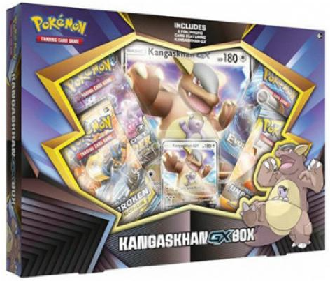 Kangama GX Box-Édition anglaise. Kangama-GX est prêt pour le combat ! Cette boîte vous apporte non seulement Kangama-GX, mais aussi une impressionnante carte Pokémon GX surdimensionnée ainsi qu’une carte Promo plastifiée. Kangaskhan