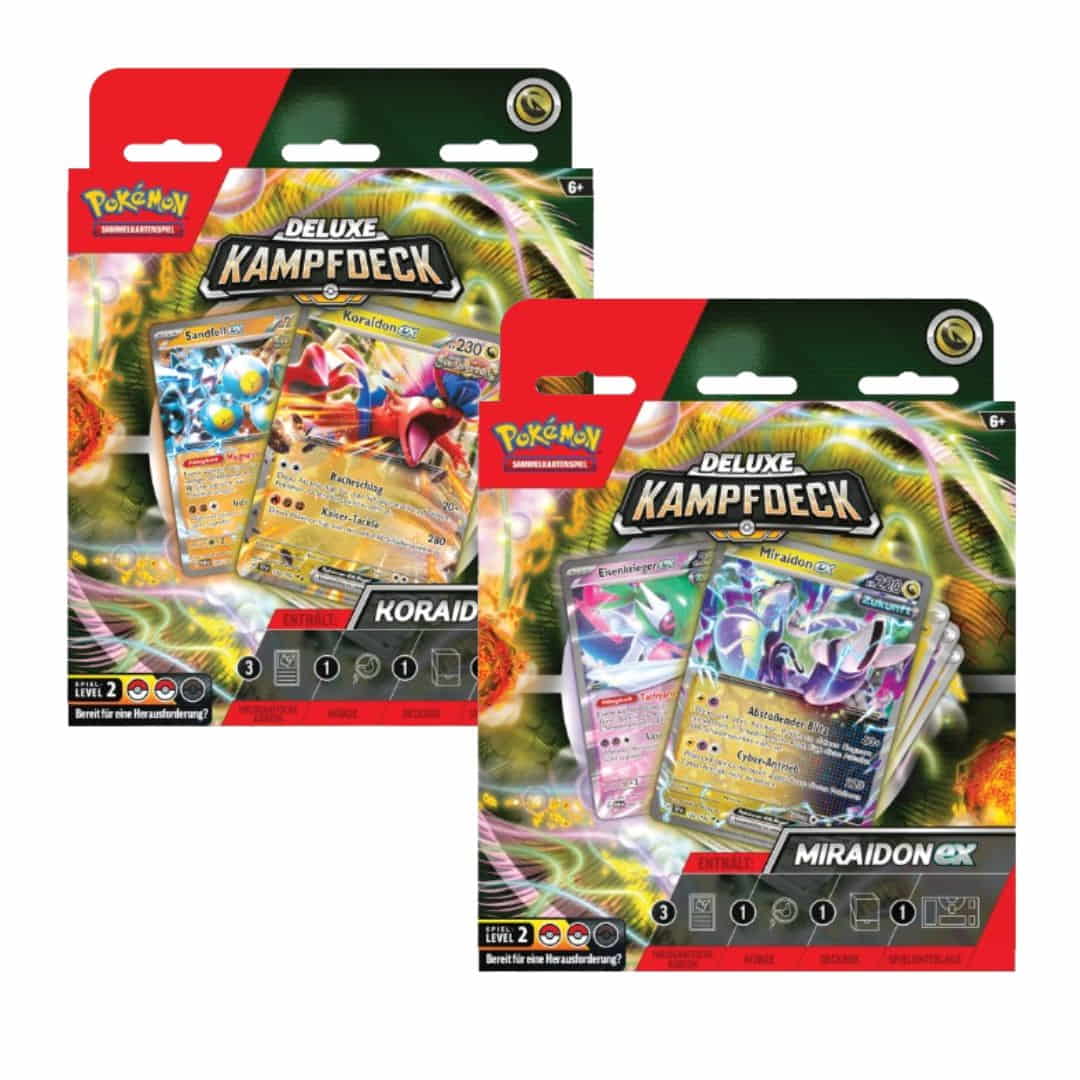 Les Battle Decks Pokémon TCG : Deluxe offrent une progression pour les joueurs prêts à relever le défi, avec des stratégies plus avancées et des cartes Power supplémentaires. Chaque deck de 60 cartes contient 3 cartes transparentes et tout ce dont vous avez besoin pour jouer immédiatement. Que le combat de luxe commence !