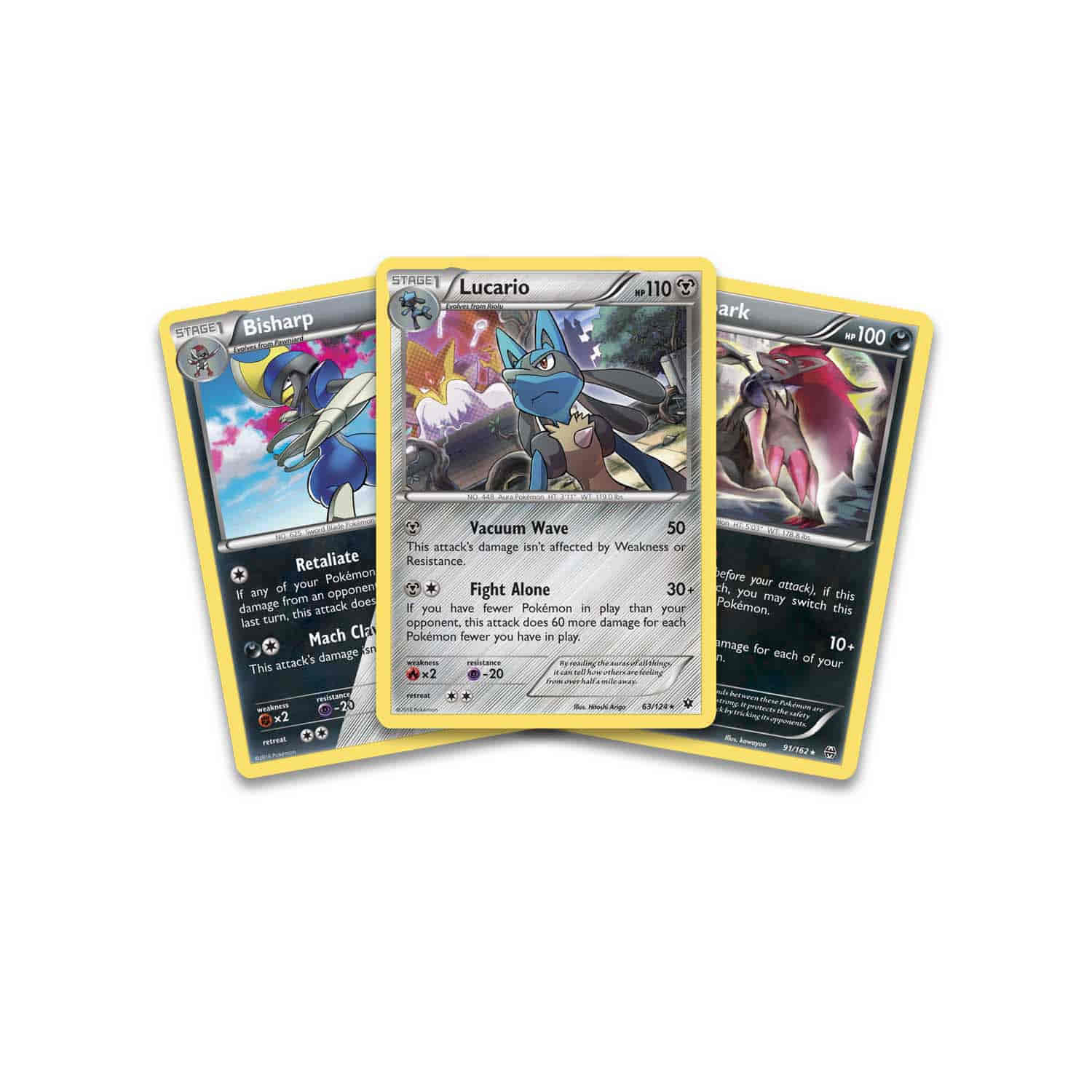Trois grands Pokémon – le discret Lucario, le dangereux Bisharp et le mystérieux Zoroark – font de cette Knock Out Collection un jeu parfait pour tous les fans et les collectionneurs de Pokémon ! Ces trois puissants Pokémon sont tout indiqués pour les Dresseurs Pokémon prêts à agrandir leur Collection et à améliorer leurs compétences en combat !
