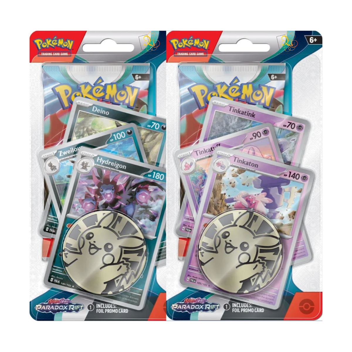 – Chaque blister contient un Booster Pokémon – Karmesin & Purpur : Paradoxrift