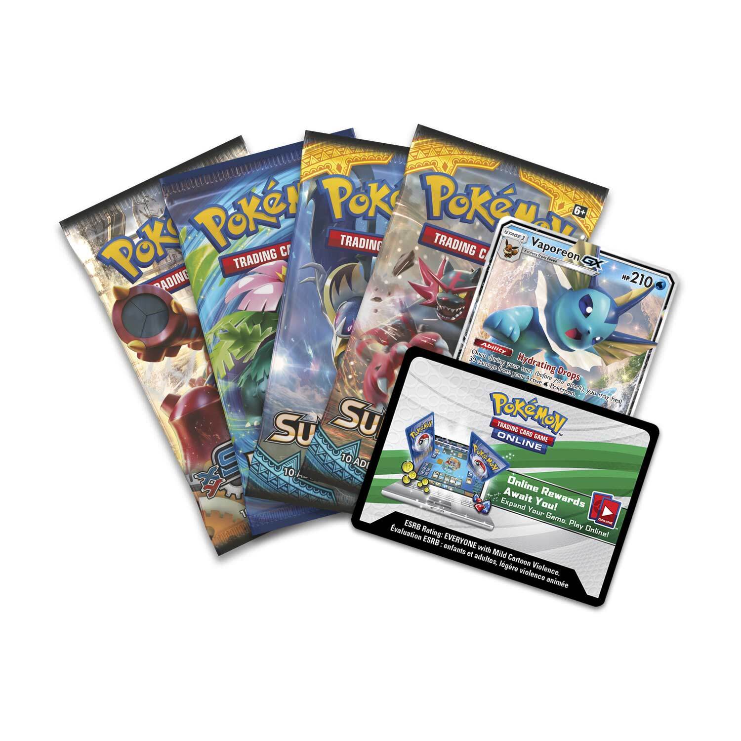 • 4 Booster Packs Pokémon TCG (Chaque pack de la série Sonne & Mond contient 10 cartes et 1 énergie de base. Chaque pack de la série XY contient 10 cartes).