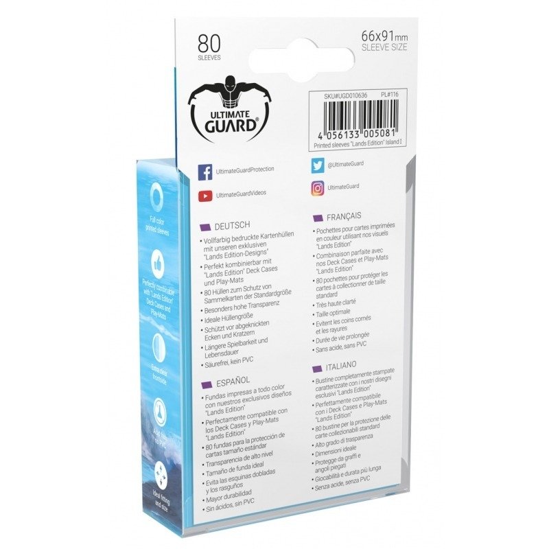 Pochettes de cartes de haute qualité imprimées en quadrichromie avec des designs exclusifs “Lands Edition” pour le rangement et la protection des cartes à collectionner de taille standard (Magic : The Gathering™, Pokémon™, etc.). 80 pochettes par Packs.