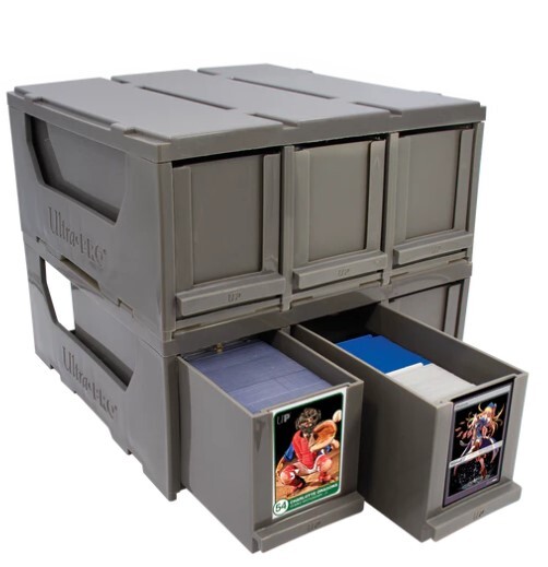 Améliorez le rangement de vos cartes avec l’organisateur à 3 tiroirs PRO-Storage d’Ultra PRO. Avec 3 tiroirs spacieux pour les cartes stockées dans des pochettes, des Toploaders, ONE-TOUCH ou autrement sans protection, les matériaux rigides en polypropylène sont sans acide et sans PVC pour un stockage de première classe. Le couvercle à encliquetage et les tiroirs amovibles vous permettent d’accéder facilement aux trois tiroirs lorsque le couvercle est ouvert ou de placer un tiroir à la fois sur la table. Pour une organisation plus poussée, cet organiseur comprend 9 séparateurs de cartes assortis et une fente à l’avant de chaque tiroir pouvant accueillir une carte à collectionner de taille standard. Avec des dimensions extérieures de 12,96 x 5,95 x 13,5 pouces et un fond encastré, ces systèmes de classement s’empilent en toute sécurité et se rangent facilement dans la plupart des systèmes d’étagères standard.