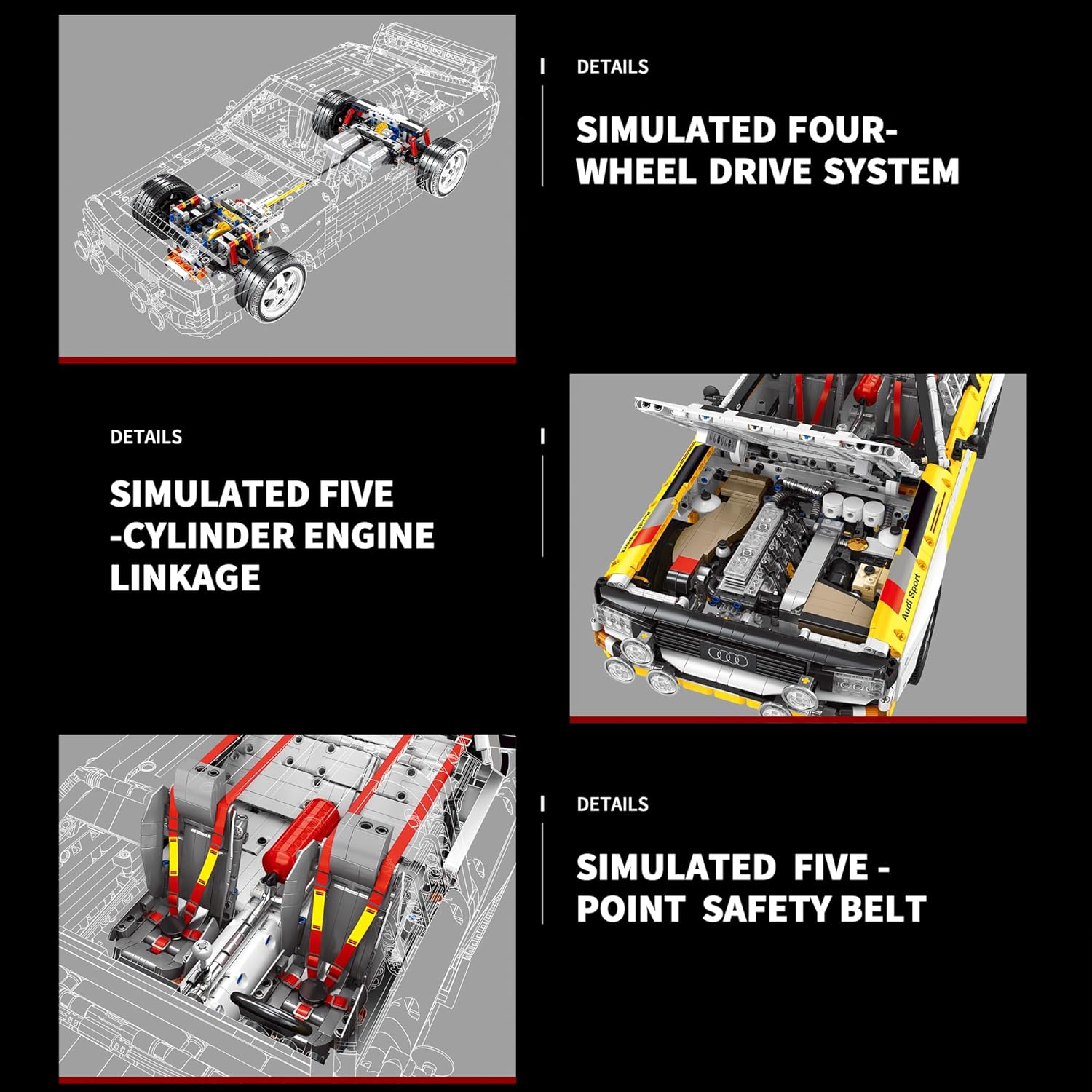 Audi Quattro S1 Group B 1984 von Happy Build – Technik-Fahrzeuge im Masstab 1:8, knapp 3900 Steine von GoBricks und eine Lizenz von Audi. Was braucht man mehr?