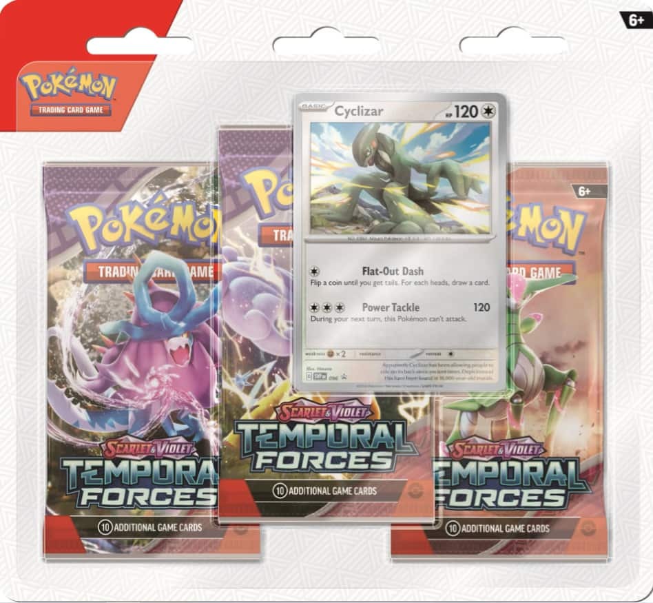 Die Reihen der Pokémon der Antike und der Zukunft werden immer größer! Windewoge ex bricht zusammen mit Raging Bolt ex aus der Vergangenheit aus, während Eisenblatt ex mit Eisenhaupt ex für Hightech-Gerechtigkeit sorgt. Außerhalb von Zone Null wechseln Schligdri und Farigiraf als Tera-Pokémon ex den Typ, und Pokémon-Trainer auf der ganzen Welt bereiten sich auf die Rückkehr von ACE SPEC-Karten mit einzigartig starken Effekten vor. Ein Riss in der Zeit bringt wilde Bestien und Cyber-Visionen in den Kampf in der Erweiterung Pokémon TCG: Scharlachrot & Violett – Zeitliche Kräfte!