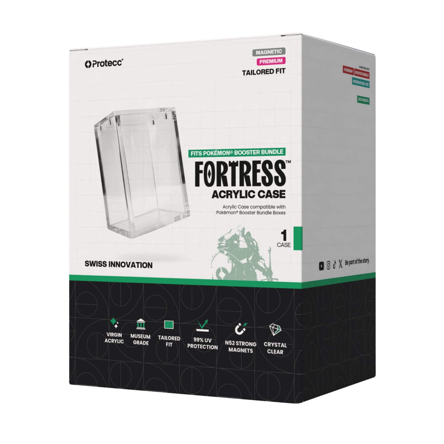 Entdecke die perfekte Kombination aus stilvoller Präsentation und Schutz für deinen Pokémon – Booster Bundle mit dem hochwertigen, magnetischen und kristallklaren Acrylcase von Protecc.