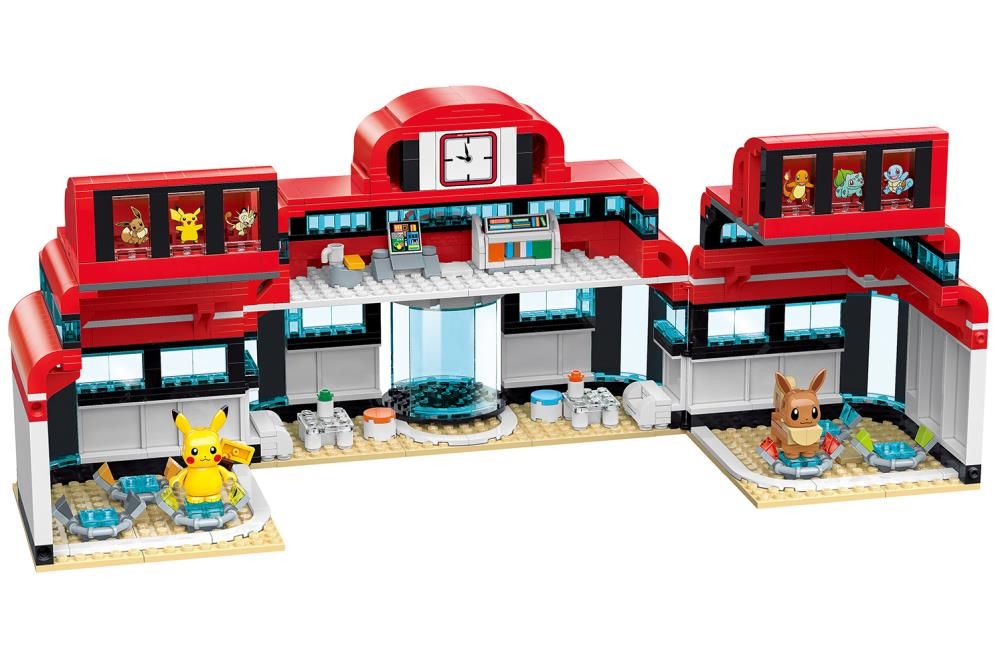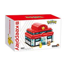Keeppley Pokémon Center. Das Set wird mit Mini-Pikachu und Mini-Eevee geliefert.