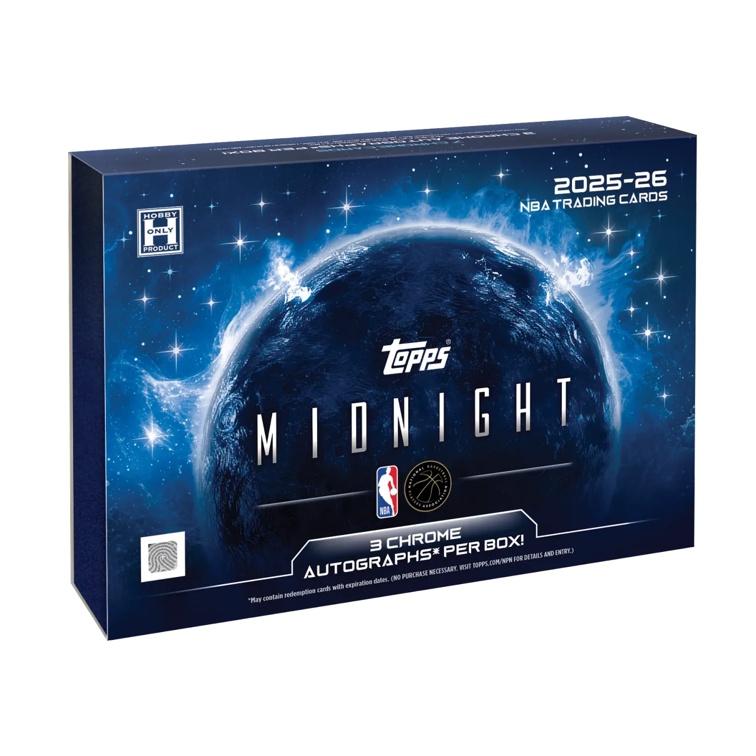 Topps Midnight Basketball kehrt für die Saison 2025–26 mit einer beeindruckenden Mischung aus hochwertigem Design und After-Hours-Attitüde zurück. Sammeln Sie Autogramme aus den Sets „Stroke of Midnight“, „Midnight Sun“, „Dark Matter“, „Horizon“, „Midnight Oil“ und dem neuen Set „Dark Marks“ mit den besten Rookies, Superstar-Veteranen und pensionierten Legenden des Jahres. Jagen Sie nach kühnen neuen Case-Hits und seltenen Beilagen wie „Night Owls“, „Daydreamers“, „Nightshade“ und „Dreamland“. Darüber hinaus wird Midnight Basketball die ersten Rookie-Patch-Autogramme aus dem Draft-Jahrgang 2025–26 vorstellen, darunter Cooper Flagg, Kon Kneuppel, Dylan Harper und viele mehr.