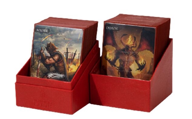 Die Kartenbox ist recyclebar und bietet Platz für bis zu 100 (double-sleeved) oder 120 (single-sleeved) Karten in Ultimate Guard Hüllen.