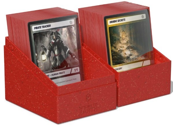 Vergrößerte Version der weltweit ersten nachhaltigen TCG deck box: den Ultimate Guard RTE Boulder 133+. Mit den Return to Earth Produkten ist endlich Schluss damit, sich zwischen seinem Hobby und den eigenen Zielen in Sachen Nachhaltigkeit entscheiden zu müssen. In dieser Box finden 133 doppelt gesleevte Karten locker Platz. Dein ökologischer Fußabdruck wird es dir danken!