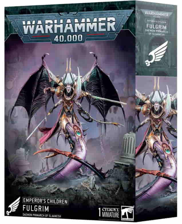 Dieser mehrteilige Plastikbausatz baut Fulgrim, den Dämonenprimarchen von Slaanesh, für deine Emperor’s Children-Armeen in Warhammer 40.000-Spielen. Sein dunkler Gönner hat ihm eine Form verliehen, die es ihm ermöglicht, verschiedene Arten von verheerenden Waffen zu führen. Auf dem Schlachtfeld ist er eine Macht, mit der man rechnen muss – aggressiv, außergewöhnlich schwer zu töten und in der Lage, es mit allem aufzunehmen, von feindlichen Horden bis hin zu mächtigen Kriegsmaschinen. Dank seiner Flügel ist er nirgendwo vor seiner furchterregenden Schlangengestalt sicher – deine Feinde können zwar fliehen, aber sie können sich nicht verstecken.