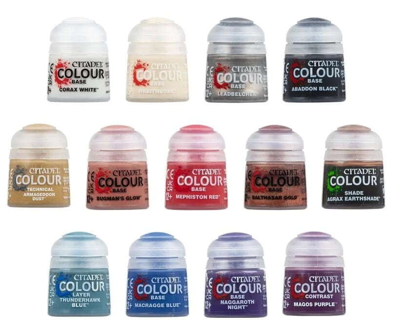 Du findest 13 verschiedene Citadel-Farben in 12-ml-Töpfen mit den wichtigsten Farben, die du für die Bemalung deiner ersten Modelle benötigst – sie eignen sich besonders für Space Marines des Ultramarines-Kapitels und Tyraniden der Hive Fleet Leviathan. Das Set enthält Kontrast- und Schattenfarben, um deinen Bemalungsschemata zusätzliche Tiefe zu verleihen, sowie technische Farben, um strukturierte Basen zu erstellen.
