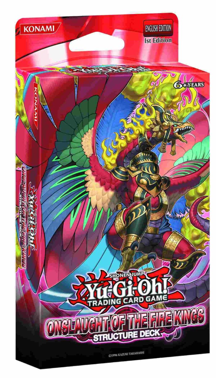 Das Structure DeckOnslaught of the Fire Kings basiert auf Wiedergeburt und Erneuerung. Immer wenn Garunix oder Nephthys durch einen Karteneffekt zerstört wird, kommt er kurz darauf mit Glanz und Gloria auf das Feld zurück. Und dann scheinen ihre Feuer so hell, dass sie alle Karten einer speziellen Art anstecken: Garunix zerstört alle anderen Monster auf dem Spielfeld, während Nephthys alle Zauber und Fallen zerstört.